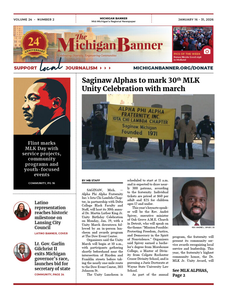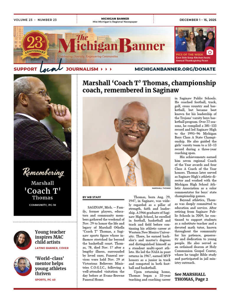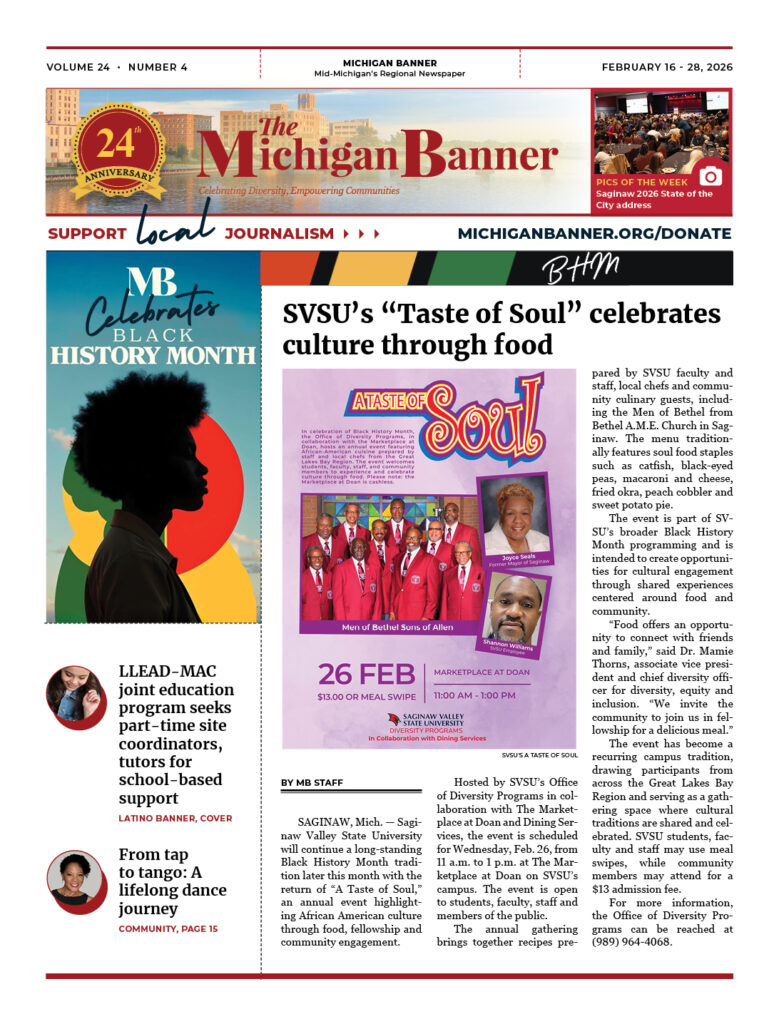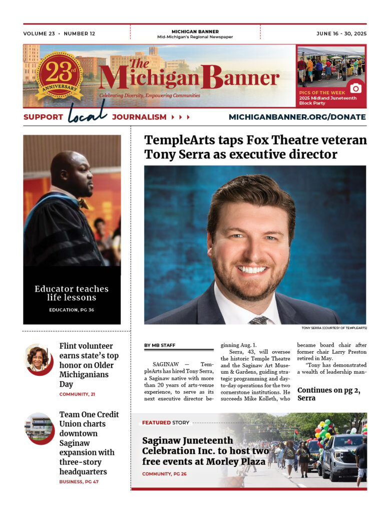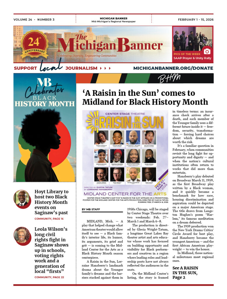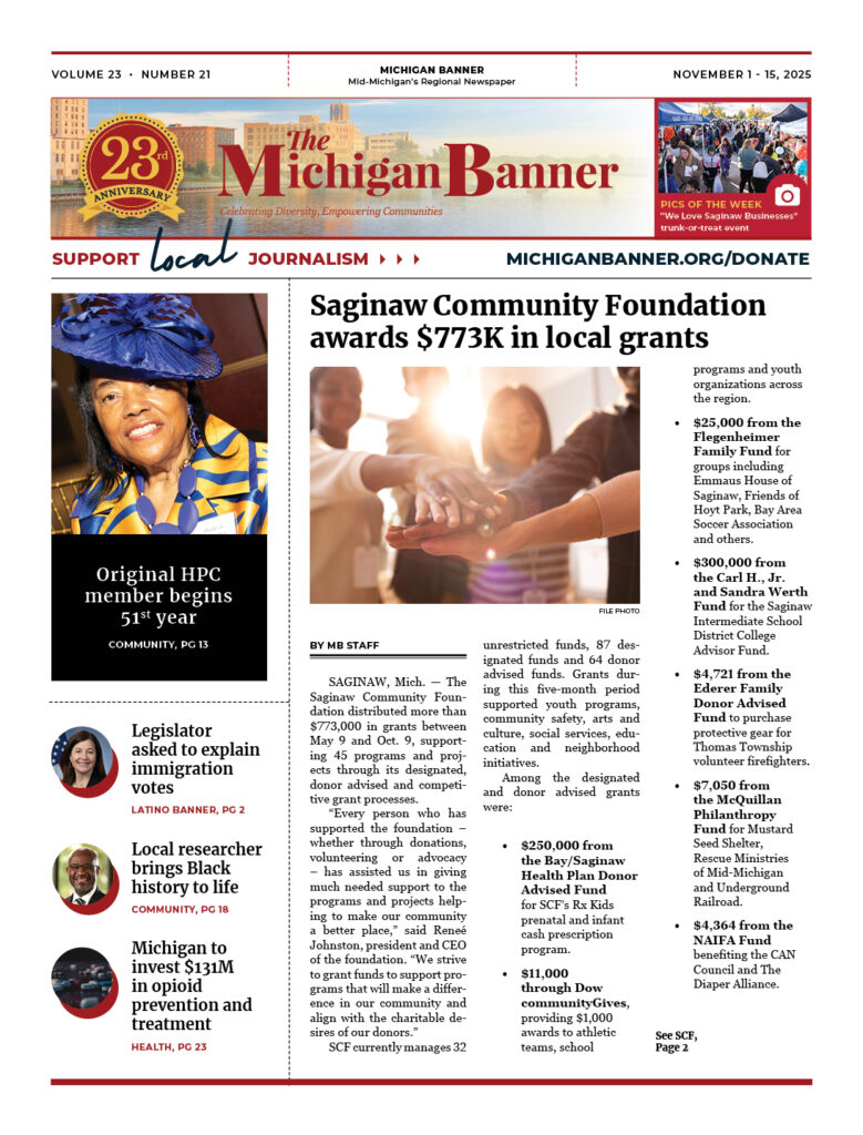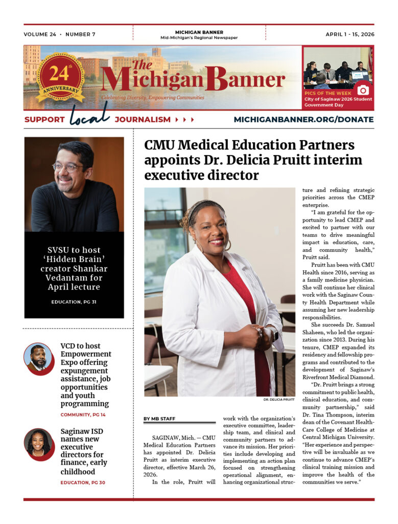 The Michigan Banner publishes on the 1st and 16th of each month, delivering a snapshot of life across the Great Lakes Bay Region. Each edition blends breaking developments with human-interest profiles, covering everything from city hall and classroom innovations to health, faith, business and sports.