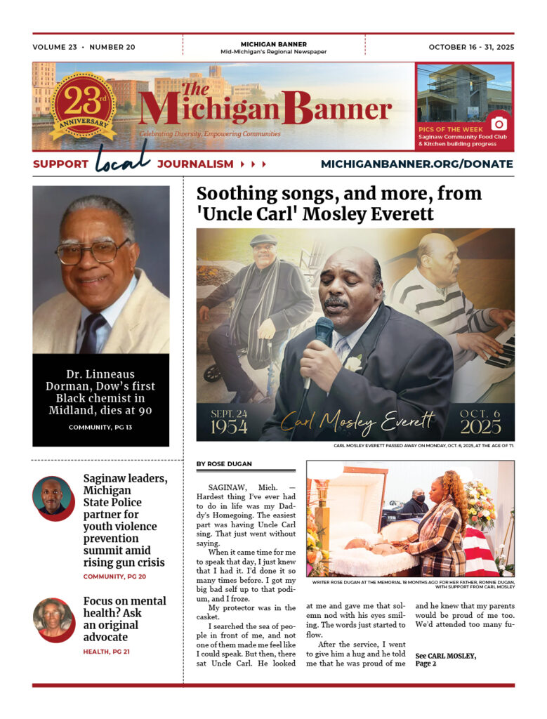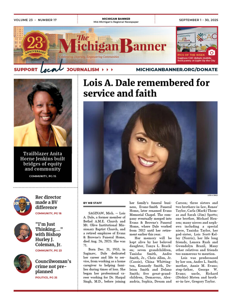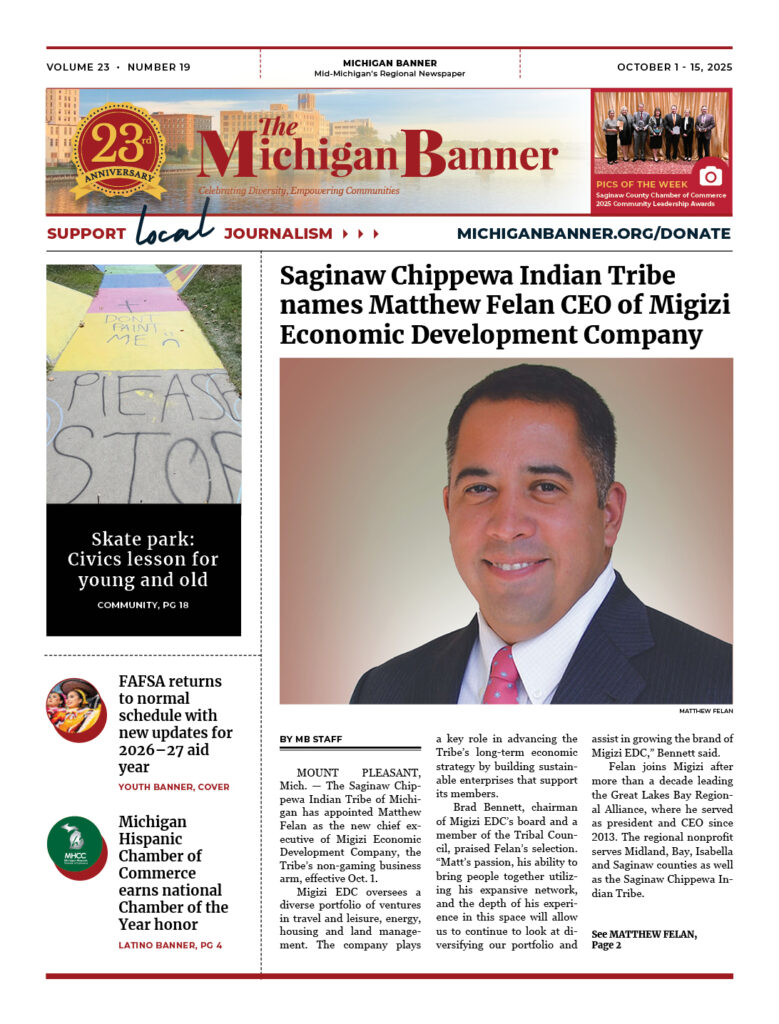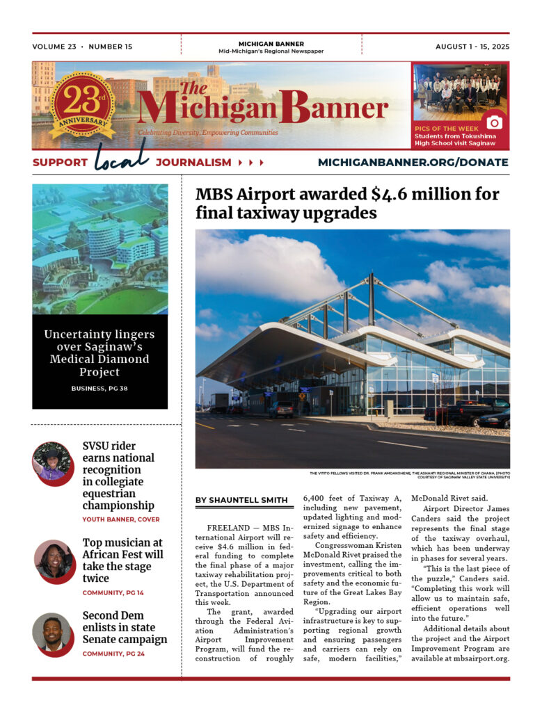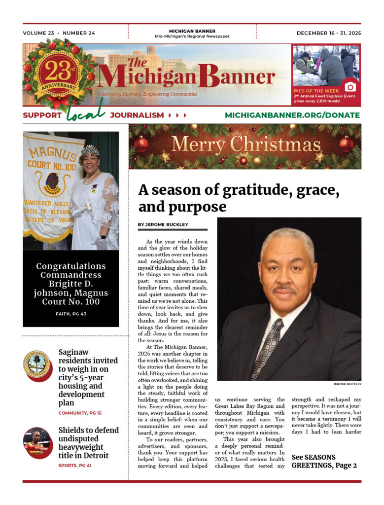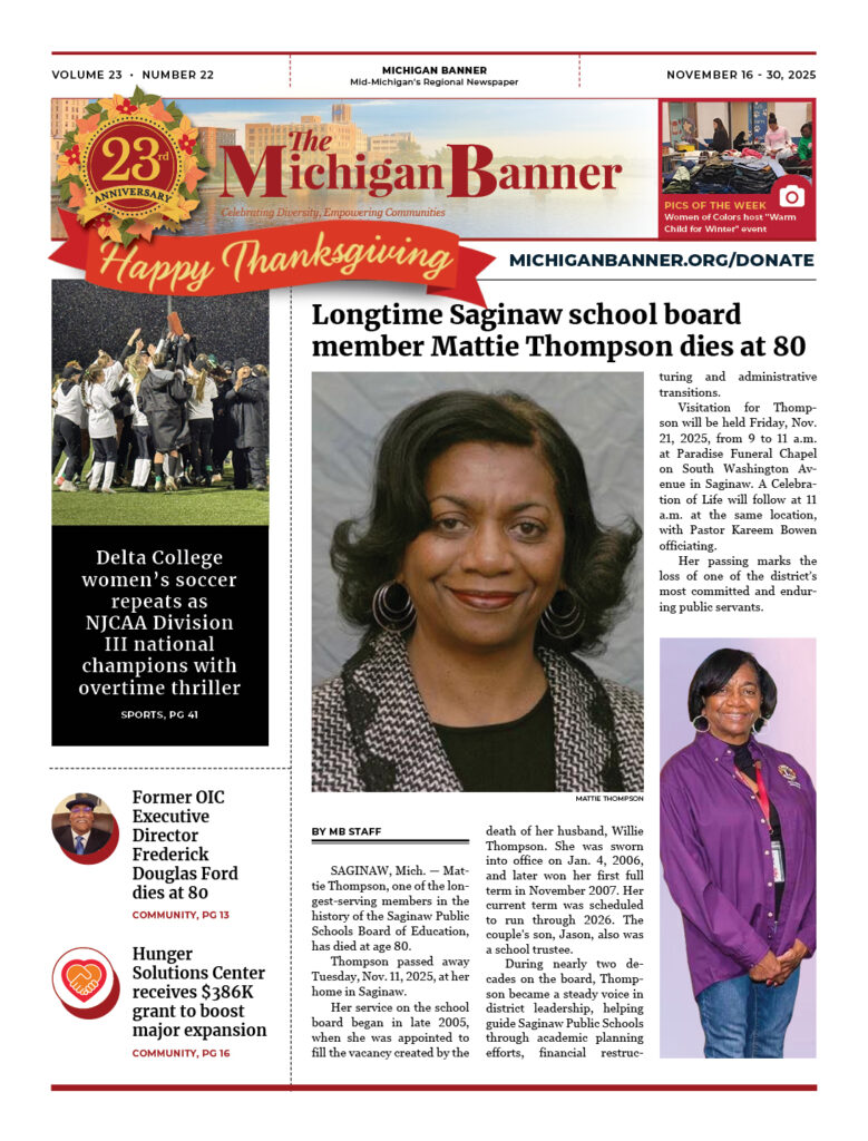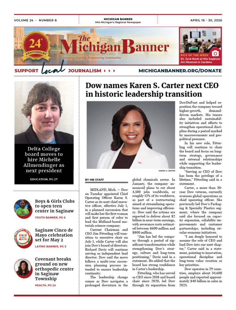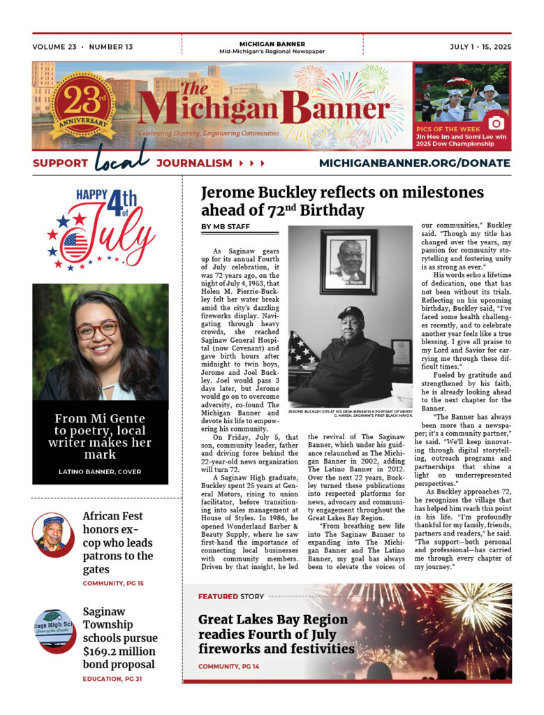 The Michigan Banner publishes on the 1st and 16th of each month, delivering a snapshot of life across the Great Lakes Bay Region. Each edition blends breaking developments with human-interest profiles, covering everything from city hall and classroom innovations to health, faith, business and sports.